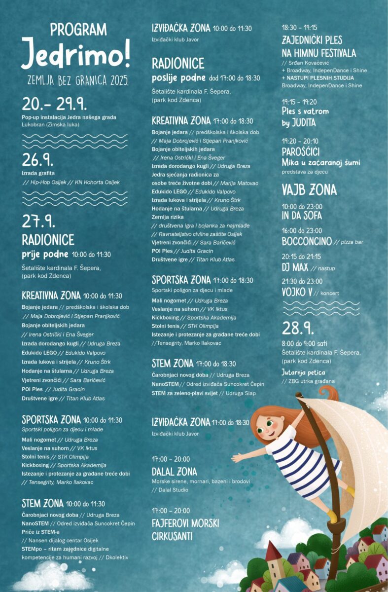 Zemlja bez granica nastavlja svoju plovidbu u Osijeku. 15. rujna radionice počinju u 12 osnovnih i srednjih škola u Osijeku i okolici, te u 6 osječkih vrtića. Radionice […]